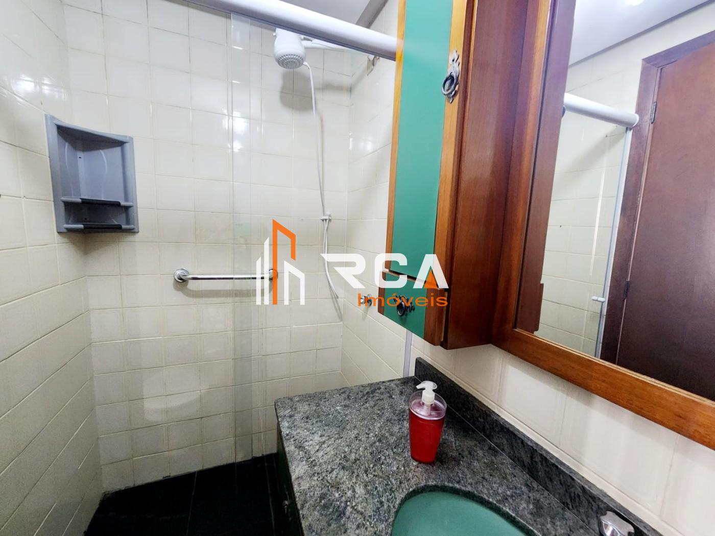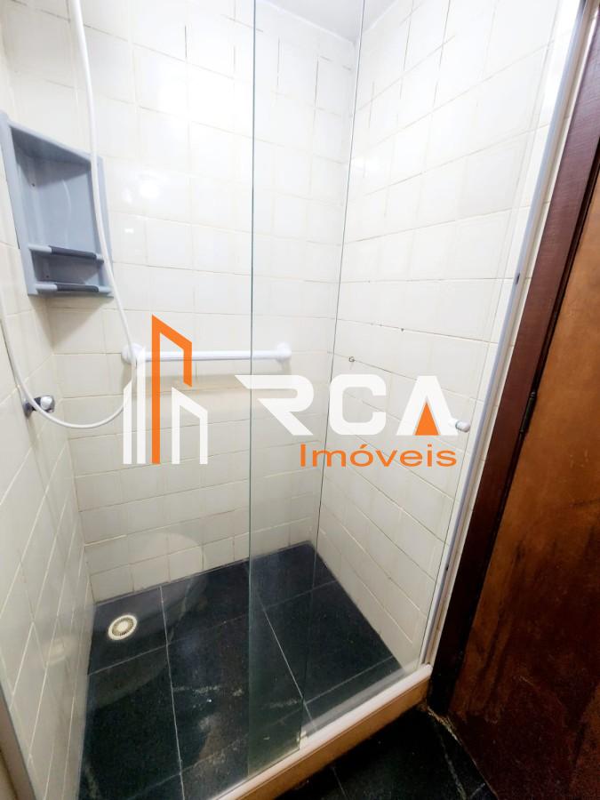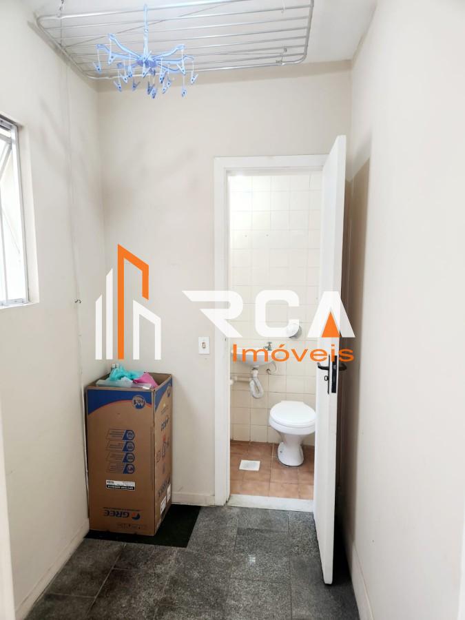 sendo três banheiros no total, cozinha com bancada para refeições rápidas, área, quarto e banheiro de serviço.